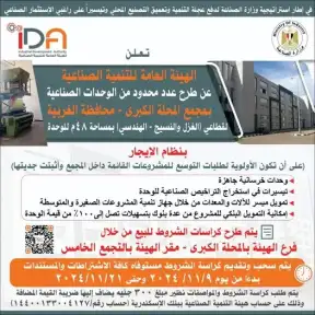 وزارة الصناعة: تزامنًا مع عيد العمال القادم طرح جديد للوحدات الصناعية الجاهزة...
