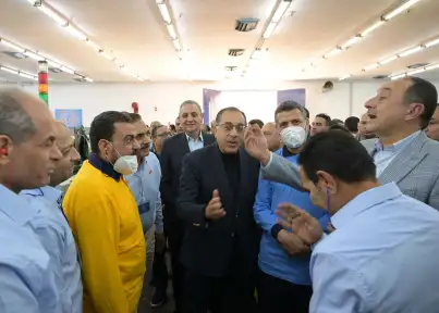 رئيس الوزراء يتفقد مصنع الشركة الرباعية فورتكس للنسجيات بمدينة السادات